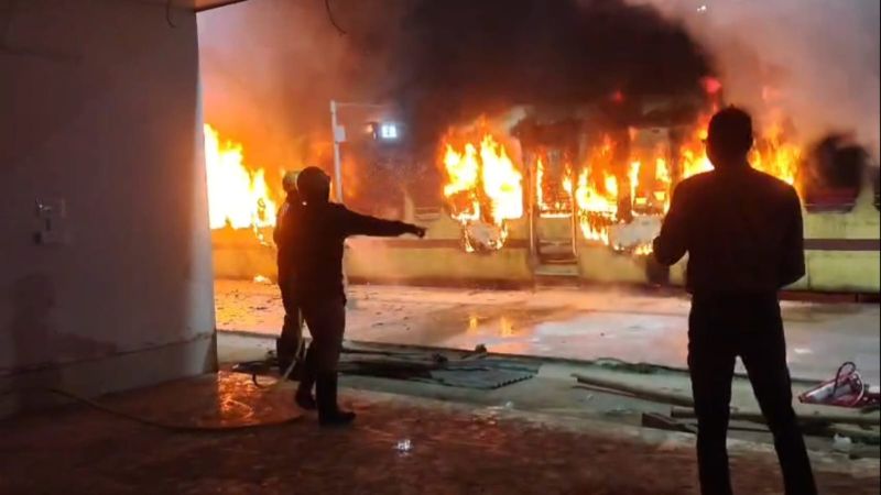 নিজস্ব সংবাদদাতা, কাটোয়া:- কাটোয়া স্টেশনে ভোরবেলা ট্রেনে আগুন, দমকলের তৎপরতায় বড় দুর্ঘটনা এড়ানো গেল পূর্ব বর্ধমানের কাটোয়া রেলস্টেশনে ভোররাতে দাঁড়িয়ে থাকা একটি যাত্রীবাহী ট্রেনের কম্পার্টমেন্টে ভয়াবহ অগ্নিকাণ্ডের ঘটনা ঘিরে চাঞ্চল্য ছড়ায়। রবিবার ভোর প্রায় সাড়ে চারটে নাগাদ ২ নম্বর প্ল্যাটফর্মে দাঁড়িয়ে থাকা ৫৩৪৩৫ আপ আজিমগঞ্জ প্যাসেঞ্জার ট্রেনের একটি বগি থেকে ধোঁয়া ও আগুনের শিখা বের হতে দেখেন যাত্রীরা। মুহূর্তের মধ্যে আগুন দাউ দাউ করে জ্বলতে শুরু করে এবং প্ল্যাটফর্ম জুড়ে আতঙ্ক ছড়িয়ে পড়ে। খবর পেয়ে দ্রুত ঘটনাস্থলে পৌঁছায় জিআরপি ও আরপিএফ। সঙ্গে সঙ্গে দমকল বিভাগকে খবর দেওয়া হয়। অল্প সময়ের মধ্যেই দমকলের দুটি ইঞ্জিন এসে আগুন নেভানোর কাজে হাত দেয়।