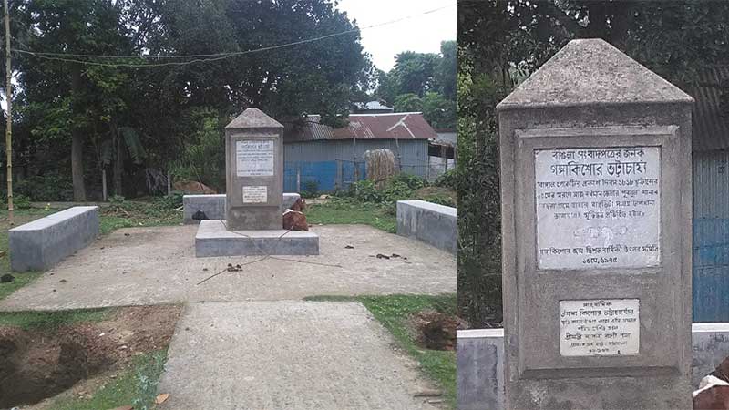 হয়ে বেঁচে থাকলেও ইতিহাসের সেই ছাপাখানা আজ আগাছায় মুখ ঢেখেছে ।গঙ্গাকিশোর বাঙালির অতীত ইতিহাসকে ছাপা অক্ষরে বাঁচিয়ে রেখেছিলেন।ইংরেজ শাসনকালে তীব্র অন্ধকারকে নিজের কলম দিয়ে ব্যঞ্জনাময় আলোর মুখে বাঙালিকে দাঁড় করিয়েছিলেন। বাংলার প্রথম সাংবাদিক, সম্পাদক ও প্রকাশক হয়েও ব্রাত্য হয়ে পড়ে আছে তাঁর সাধের বঙ্গাল গেজেটি ছাপাখানা। বহড়ার ভট্টাচার্য বাড়ির দক্ষিণ দিকে ছাপাখানার ভবনের শরীর জুড়ে আকীর্ণ ফাটল ,আগাছার জঙ্গলের পাশে কান পাতলে শুনতে পাওয়া যায় জীবনের পরতে পরতে আবেগ অনুভূতি বিষাদ, উল্লাস কত কি লুকিয়ে আছে এই ছাপাখানা ডাঙার অলিন্দে। অক্ষরের দল কবে ঘুমিয়ে গিয়েছে বাঙালির প্রথম ছাপাখানা আজ ধ্বংসের প্রহর গুণছে দেখার কেউ নেই ।
